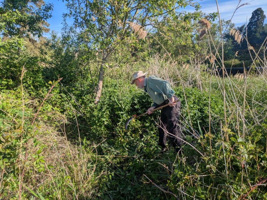 A quick messaging between the two people that were going to be around to help tomorrow resulted a scythe being added to the car load of tools, ropes and mud weights being assembled for the next day.
