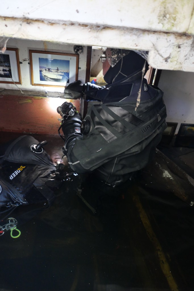 So it was back to plan A pumps but this time with a diver on hand to feel for the inflow of water and plug any holes found.